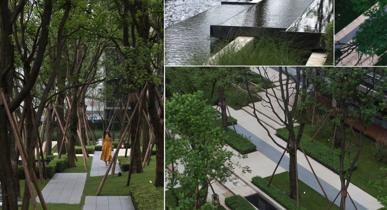 以多年设计经验运用于住宅园林设计,借助地形特点进行绿化造景,有效利用综合景观资源,使得环境空间丰富多样和鲜明的层次感。使建筑藏身于树林繁花之间,建筑与环境,环境与业主生活之间的协调,将苑区打造成移步异景,错落有致,让您每次回家都是一次出也公园,入也公园的生活旅行。