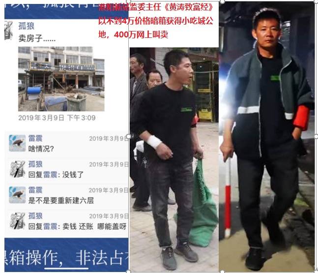 涉恶犯罪集团头目孙义录(村委主任)的娘家侄黄涛(监委主任),在已经占有本村多处宅基地的情况下,以近乎零成本,非法黑箱获取新站镇公有商业利地,在社交网络上400万叫卖该宗地块。即新站小吃城。