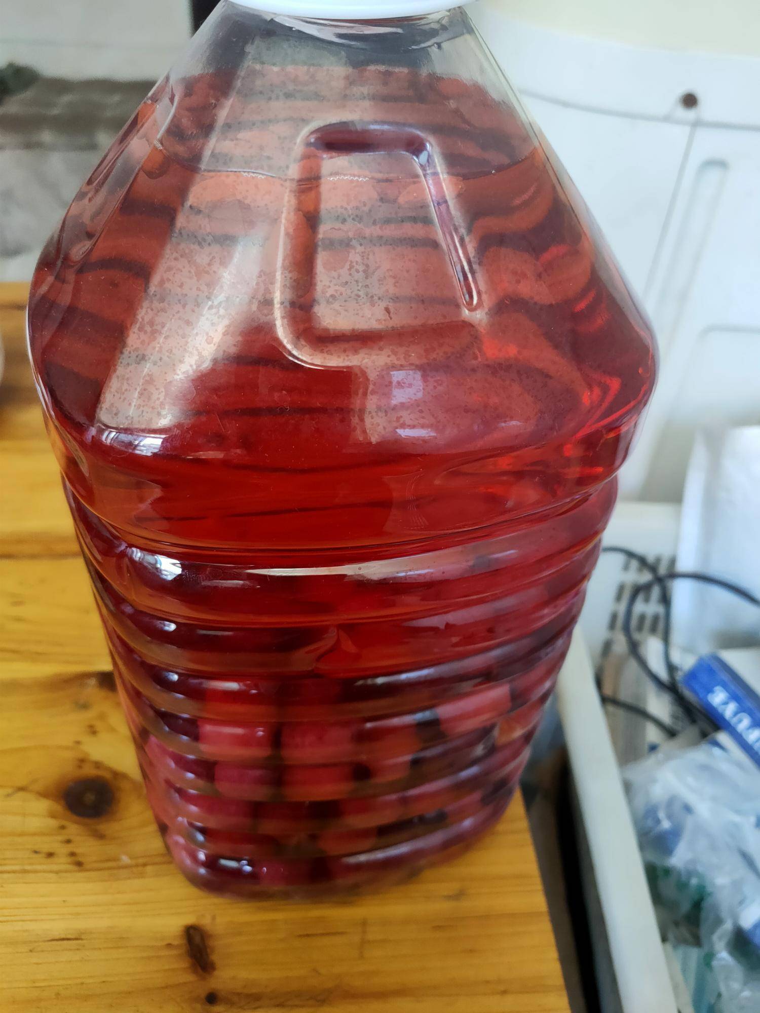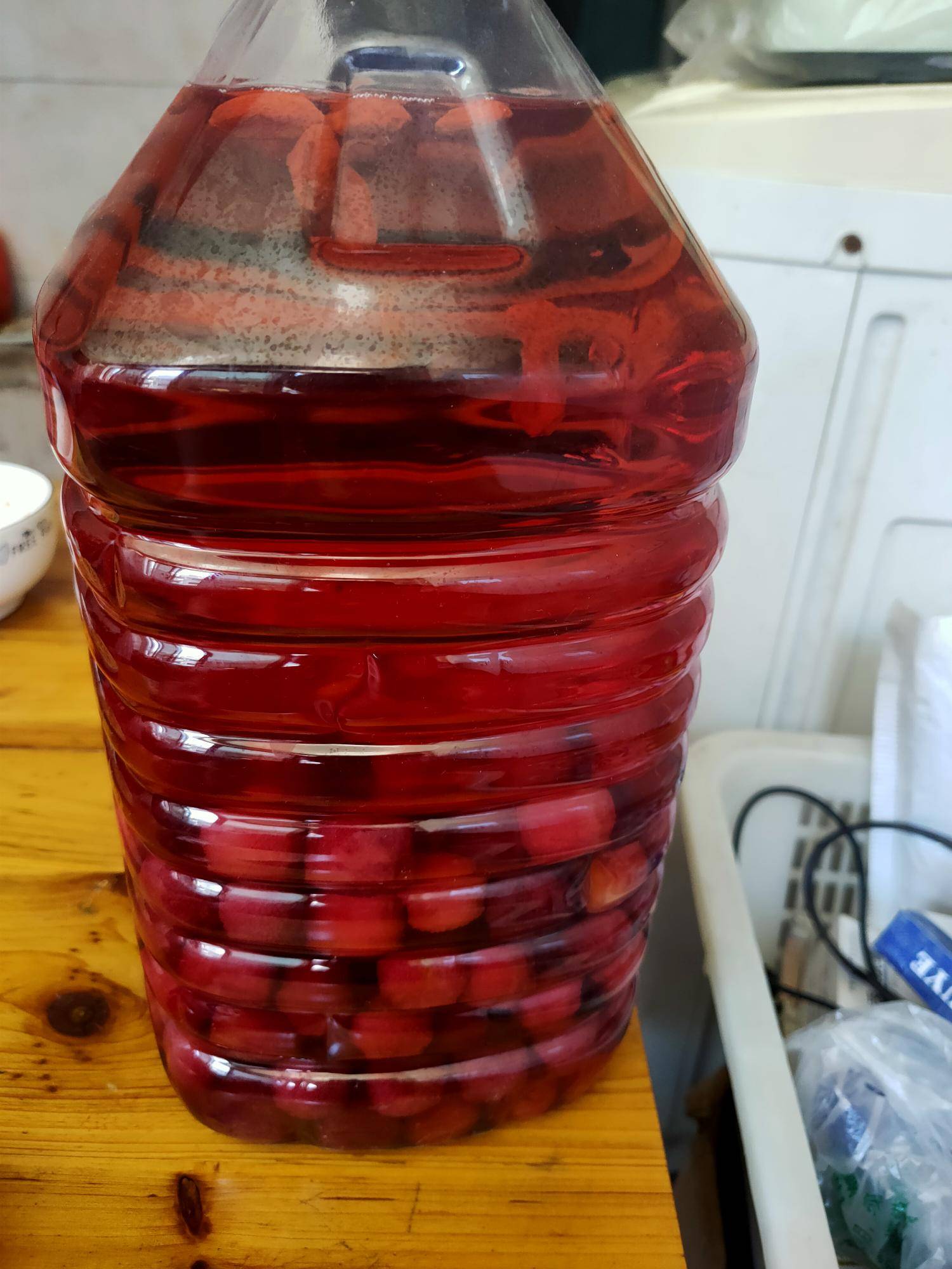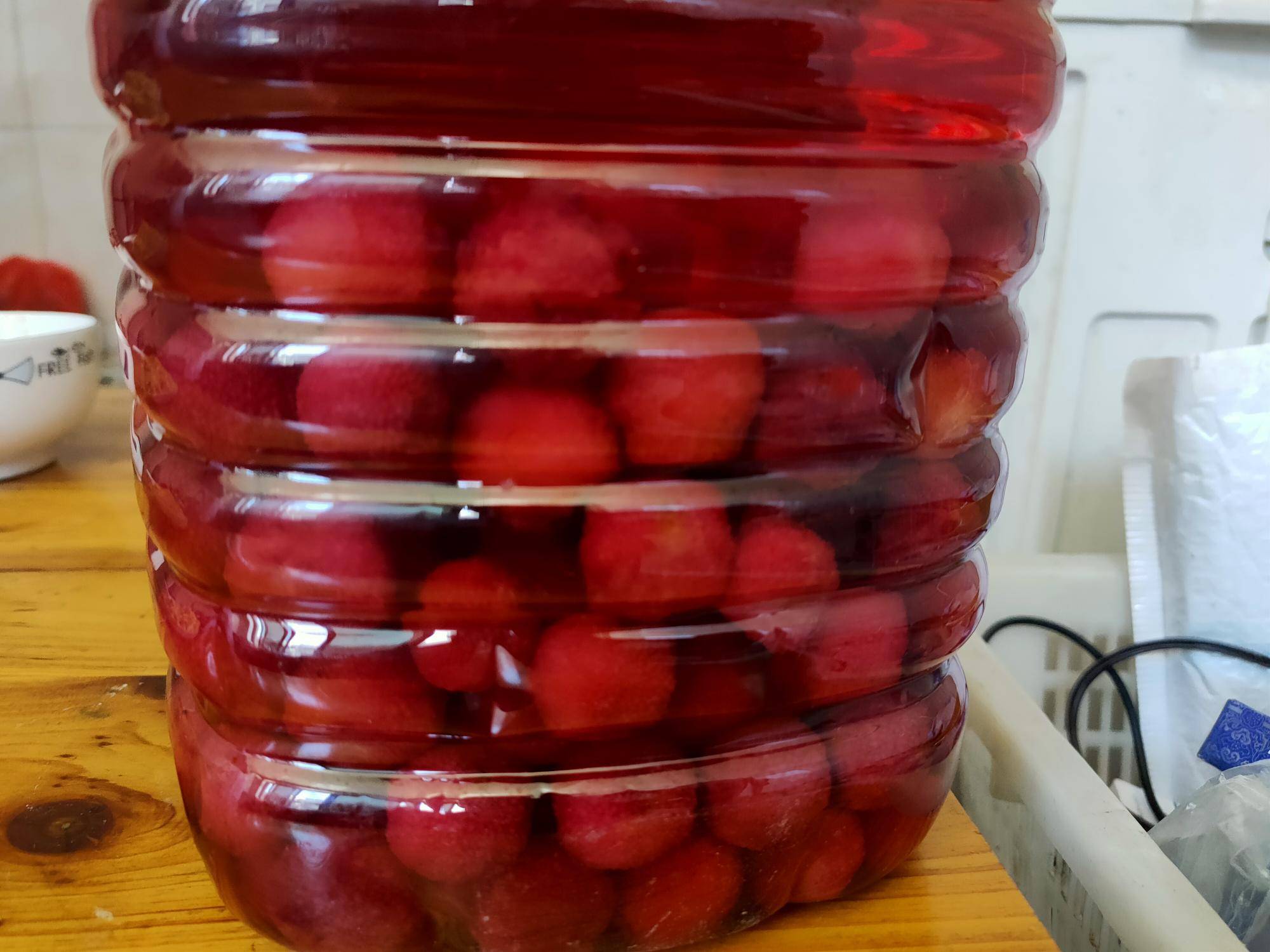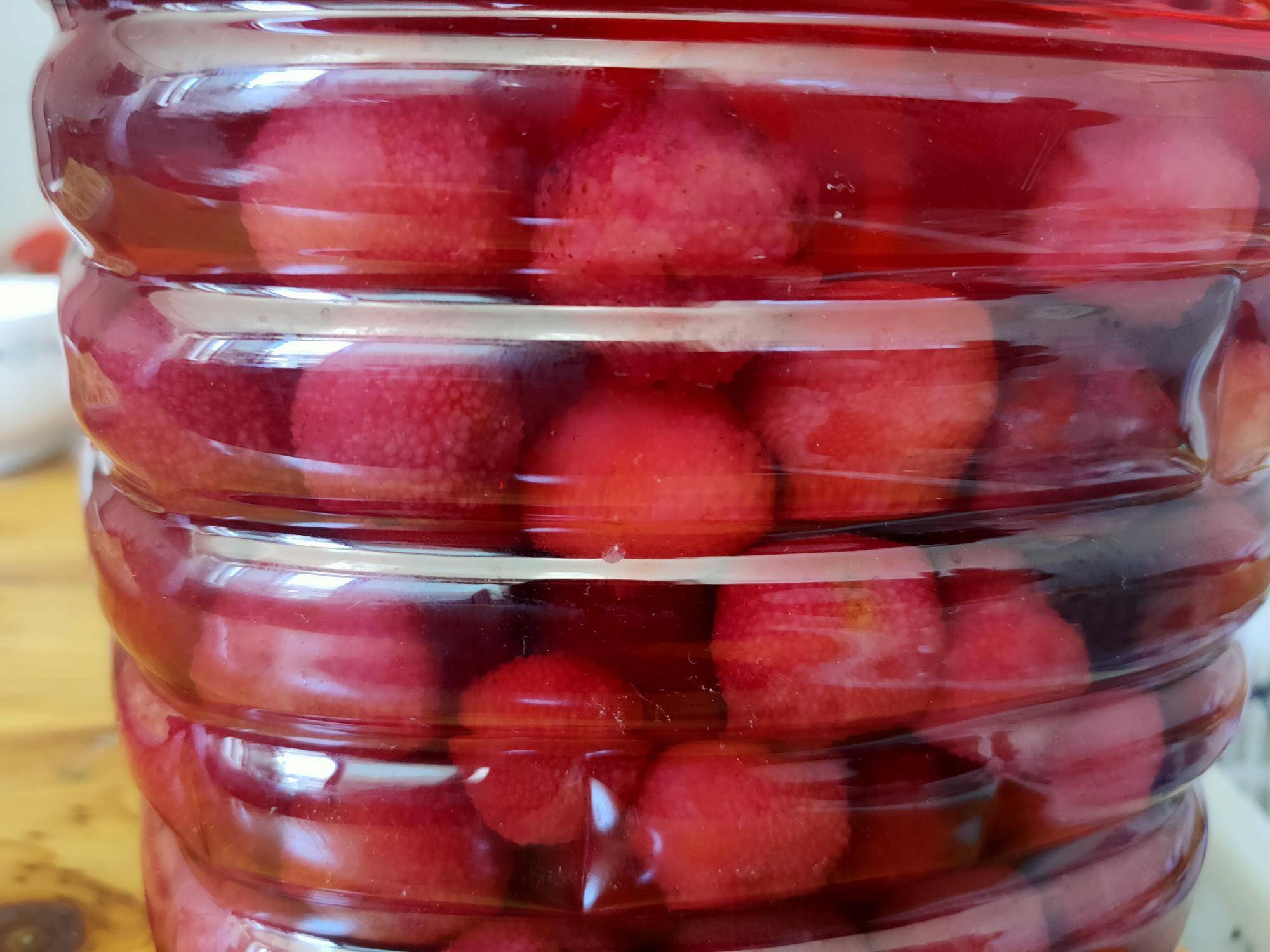 自己泡的杨梅酒,微甜可口!谁知道老家有卖的没有? |