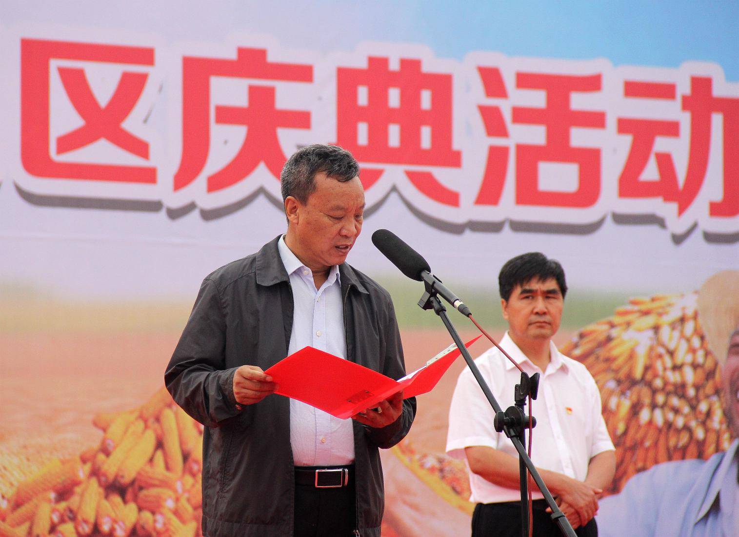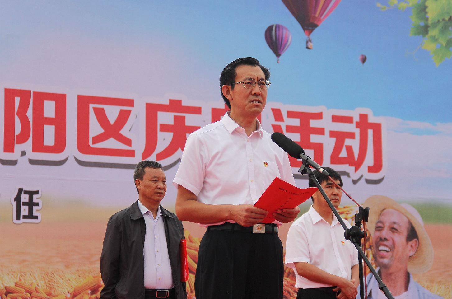 区委副书记、政法委书记胡东河同志主持了庆典活动。他首先传达了总书记向全国农民朋友和工作在“三农”战线上的同志们节日的祝福和诚挚的慰问。今年的粮食丰收来之不易,突如起来的新冠疫情给农业生产带来的挑战,全区广大干群防疫抗疫保春耕,不误农时抓生产,坚持抗灾夺丰收,确保了社会大局的稳定。今年的农民丰收节庆祝活动是以“庆丰收、迎小康"为主题。引领全区农民群众共同见证实现第一个百年目标的伟大历史时刻,充分展示农业、农村、农民的局大成就,以助推淮阳经济社会高质量的发展。