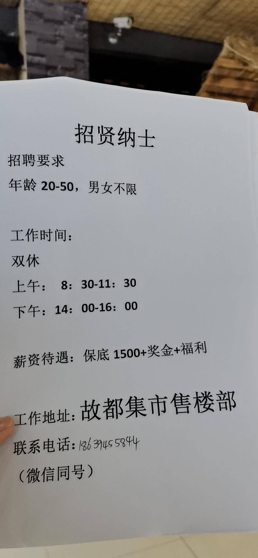 本公司现对外招聘人员若干名,不耽误你接送孩子照顾家庭,工作时间自由安排。有1500保底。