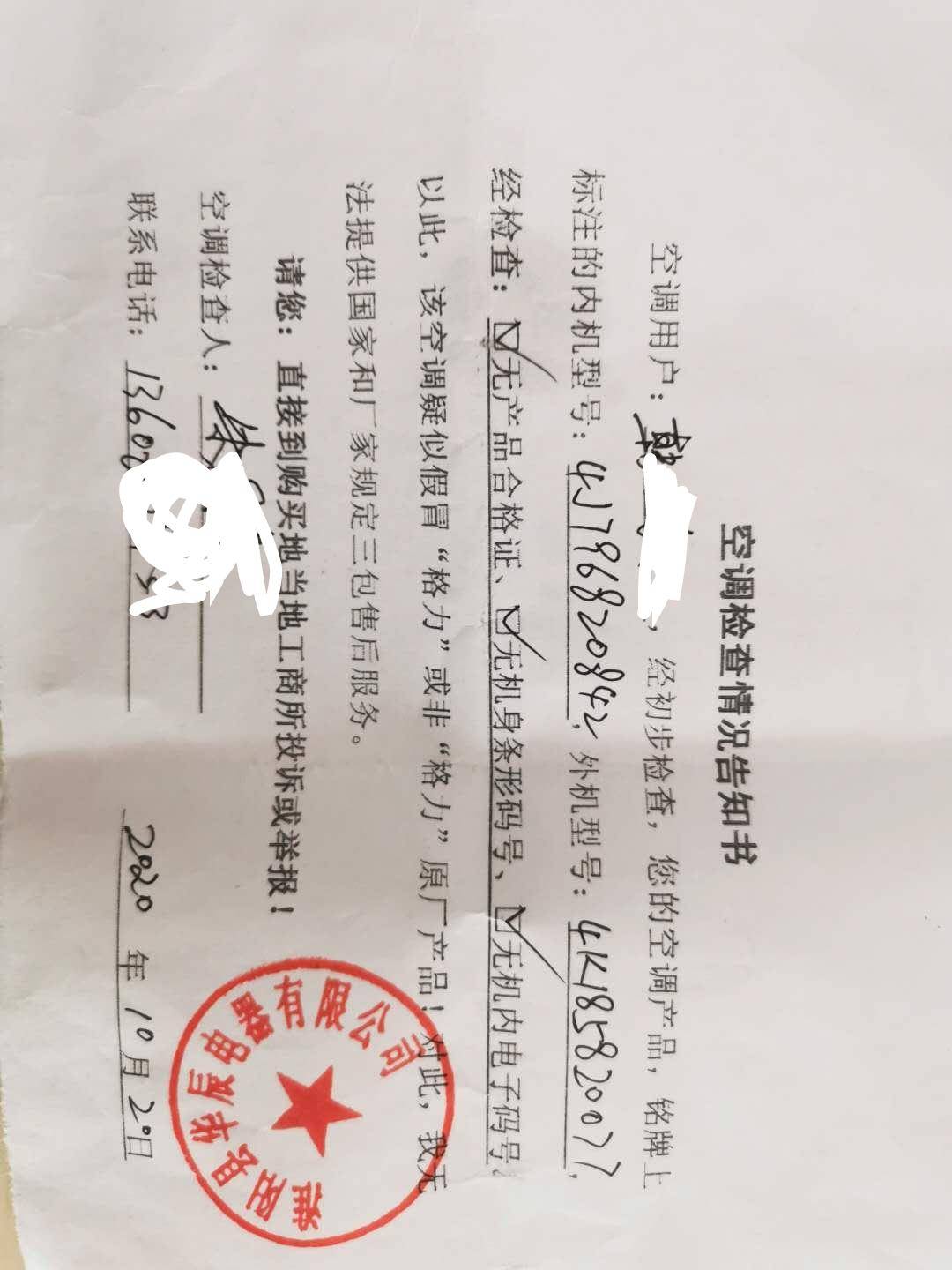 我在安岭买了3台格力空调,竟然没有一台是真的,去安岭工商所投诉,商家去我家麻利的卸走2台,还有一台客厅的空调,商家拉走那两台空调的时候说,客厅的暂时没有货,等货到了给我来换,几天过去了,给商家一联系,态度变了,说这台是窜货机,不换了,为啥那两台换的那么迅速,大家可以猜猜为啥