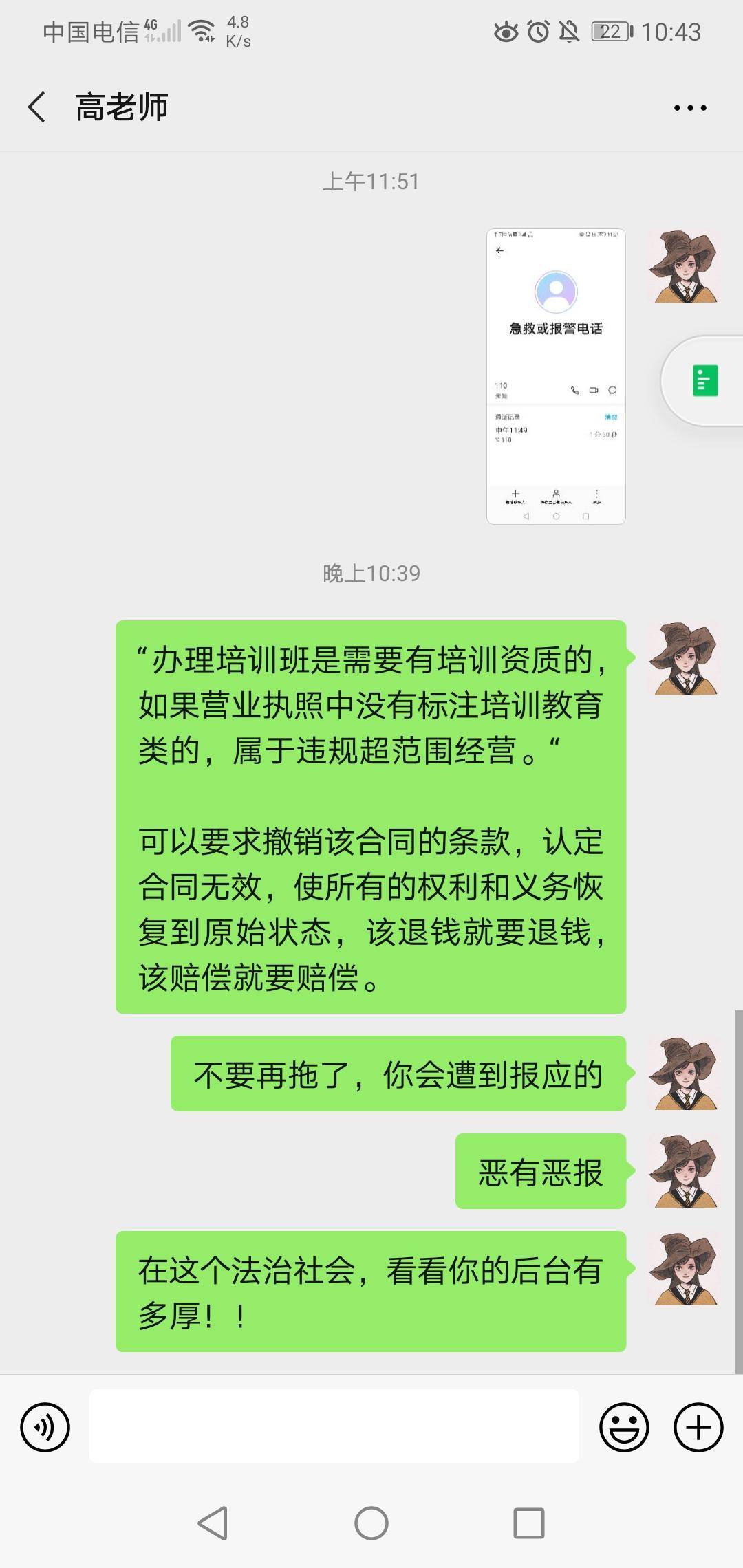 你们好!!我一名可怜的高三的学生,我在之前高二报名了一个补习班,是高三艺术生文化课集训班,因为是艺术生,期间有7个月集训,负责人按照每期6000元收费(高三普通艺术生的按照8000收费)再加上三个月疫情,期间上课时间差不多为两个月,五月份就出去学艺术了,七月份高考,这期间课程没有上课,从五月份到现在,没有再回到过补习班上课,我一共交了两期,共12000元(爸妈的血汗钱)之后因了解,这个补习班没有办理资格,在办学中存在,虚假广告夸大欺骗宣传,一次性收费超过三个月等,对学生承诺的成绩也没有任何兑现!!!(因为这个补习班在小区里(无牌匾),拖欠房东房主一年半之久,拖欠任课老师的课时费,现这个补习班已被任课老师随在的学校拉黑,但是现在还有些老师去这个补习班教课,我了解这些后,为了自己的未来着想,思考了很久,决定退费,然后这个机构负责人一直敷衍了事,对我爸爱答不理,拒接接我爸的电话,我爸妈十分生气,(这钱对我们来说是个大数目),开始互相伤害,严重影响了家庭关系,我十分的无奈,自己跟负责人联系,我拿出用法律手段维护自己的权利,然后负责人答应退钱,只肯退4000元,我交了12000在此校从12.17/1.17,和4.11-5.10两个月且第二期我还没开始学,且这个补习班无公示收费标准,这些钱对我们一家十分的重要,希望大家能帮助帮助我们!我也是走投无路了!!