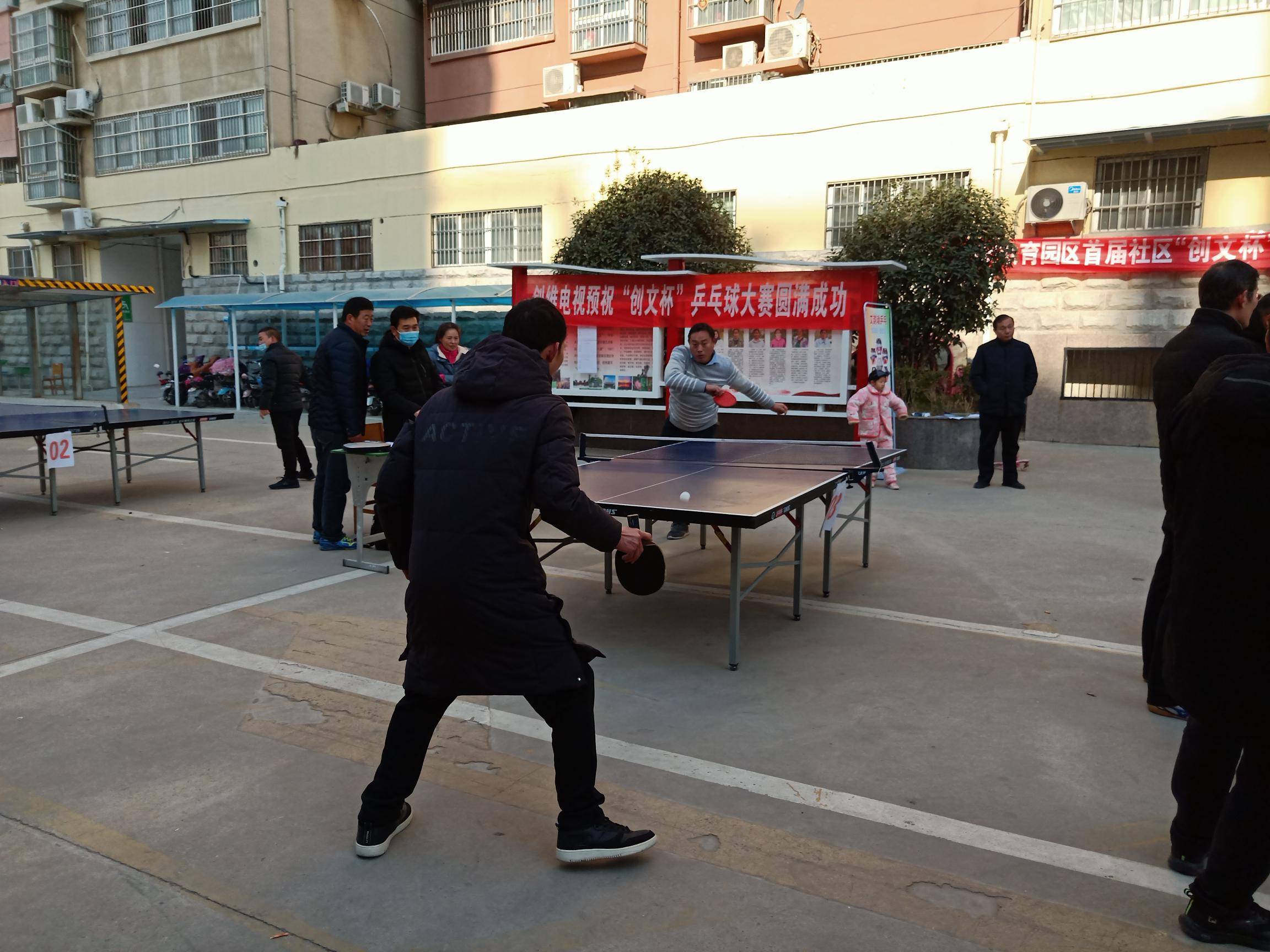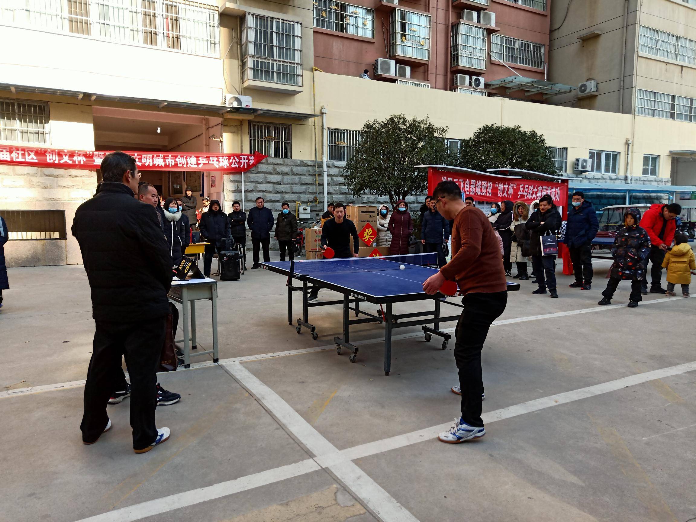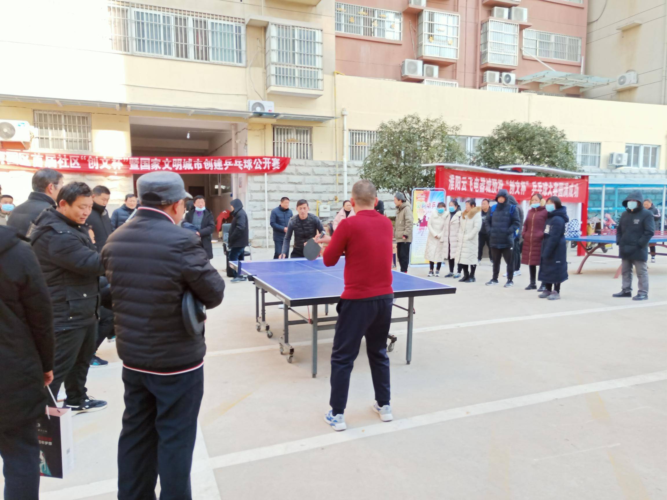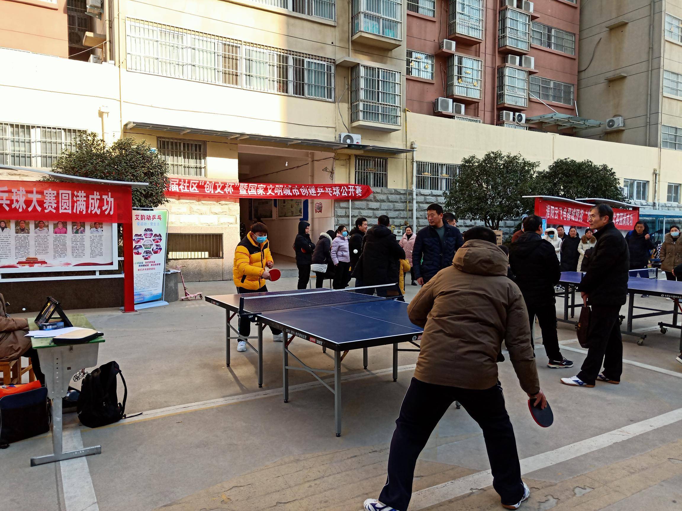 12月19日上午艾韵动乒乓球俱乐部走进陈州高中家属院,参加淮阳教育园区首届社区“创文杯”暨国家文明城市创建乒乓球公开赛,这次公开赛由十八支代表队参加,每支代表队由三名选手,比赛上午9时开始直到下午2点才结束,经过激烈的角逐,决胜出了前六名,分别是:第一名艾韵运俱乐部代表队 第二名淮阳一高代表队,第三名淮阳中学代表队,第四名,淮阳乒协代表队,第五名教体局代表队,第六名城关镇中心校代表队。