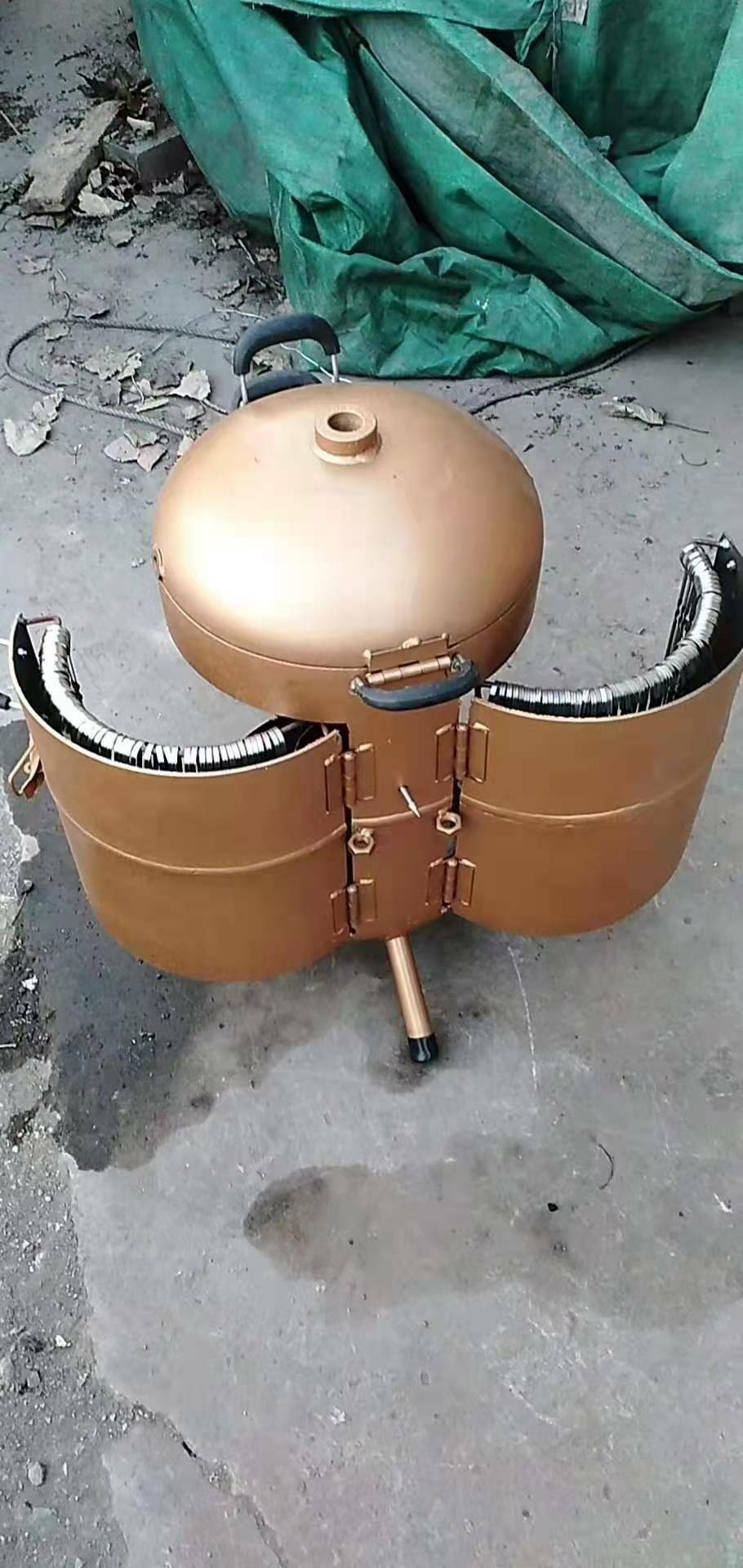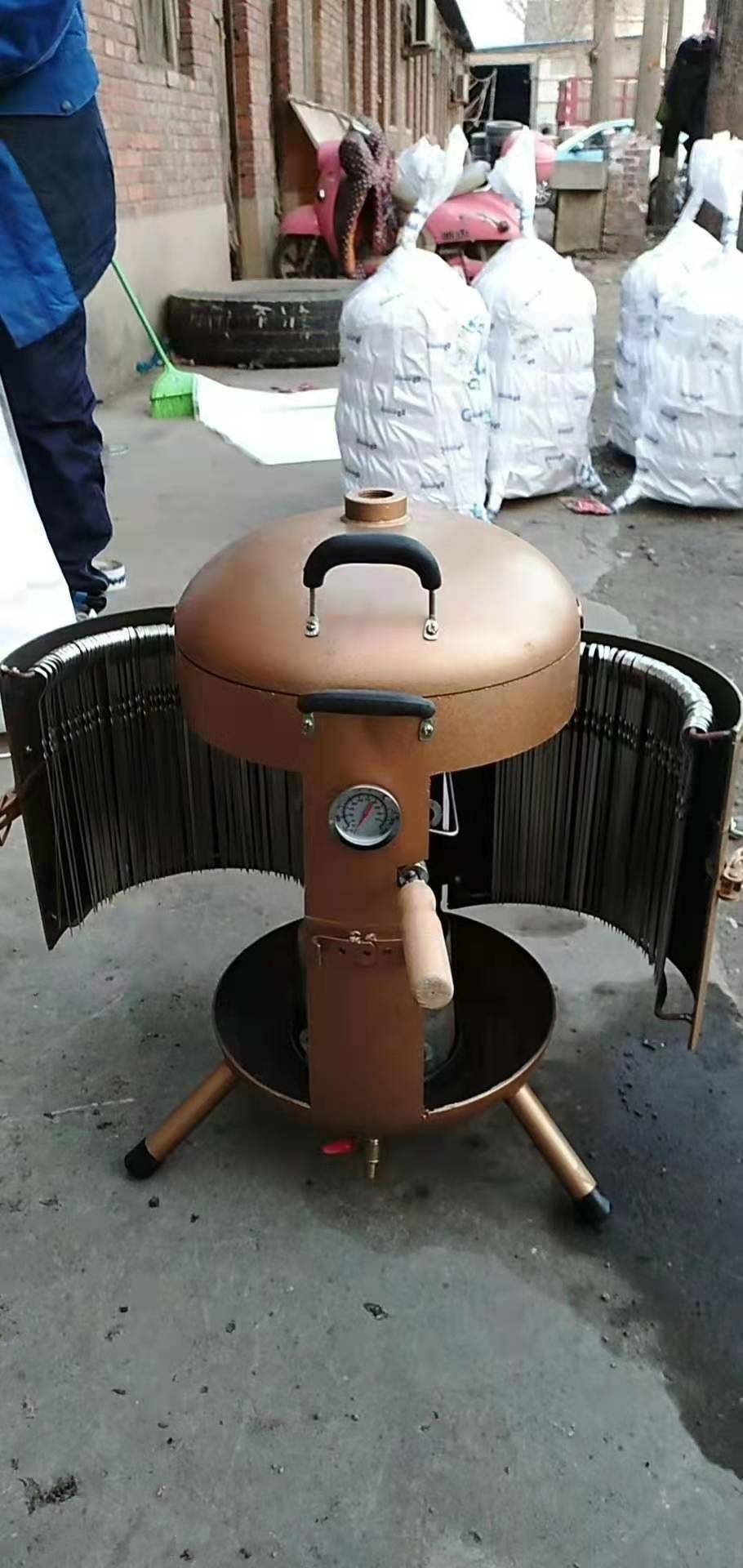 烧烤吊炉配件:不锈钢烤盘一个,烤网一个,不锈钢烤叉一个,实木调料刷子一个,不锈钢9字签钎子50个,穿串神器一个,碳炉一个,吊炉本体一个,防烫把手5个,紧固螺丝10套,500℃温度表一套,PVC材质支腿胶套3个,纯铜放油阀门1个