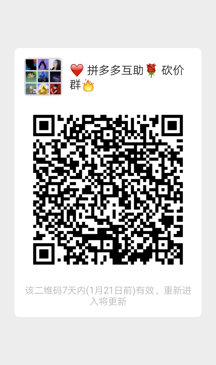 扫码直接进拼多多互助砍价群,大家相互帮忙砍价,早点拿到自己心仪的福利