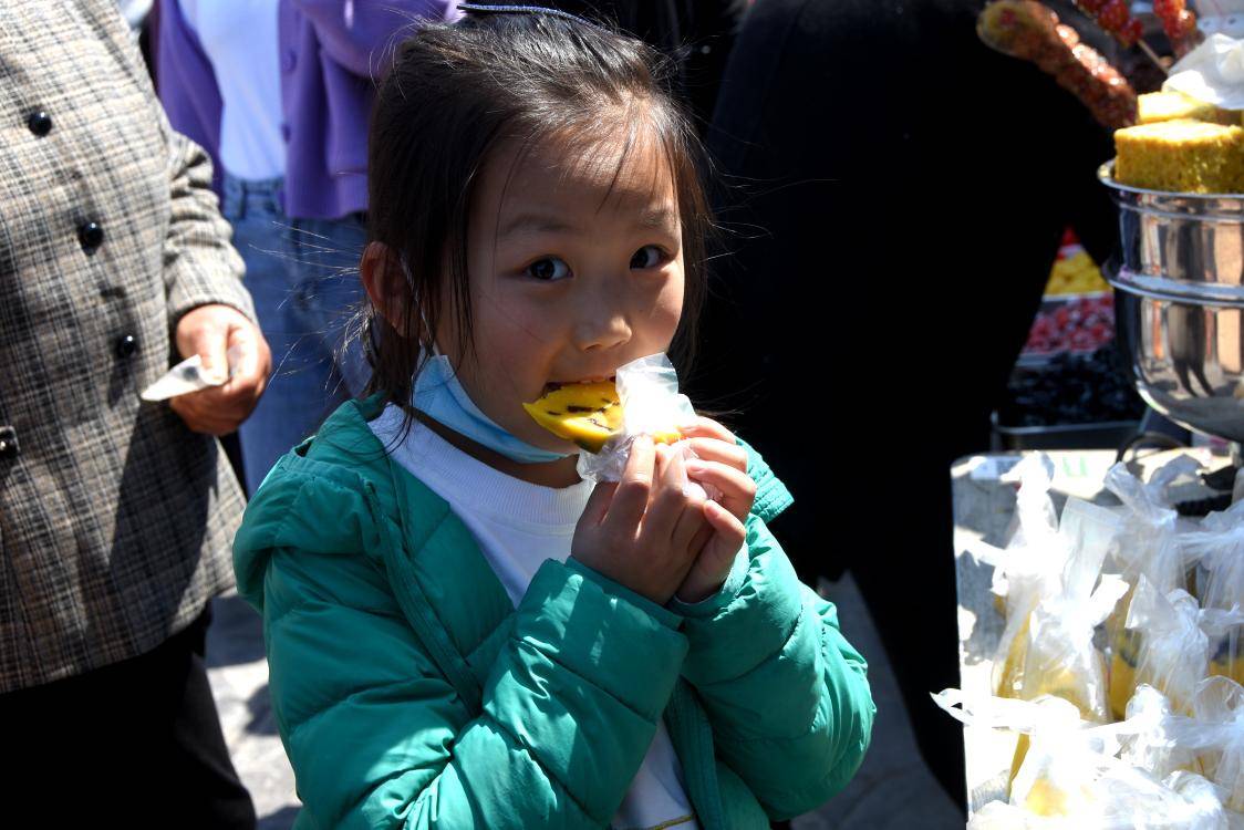在午朝门东边068号摊位经营的豌豆沙成了今年庙会上众多小吃中的“香饽饽”,人们纷纷购买品尝,赞不绝口。